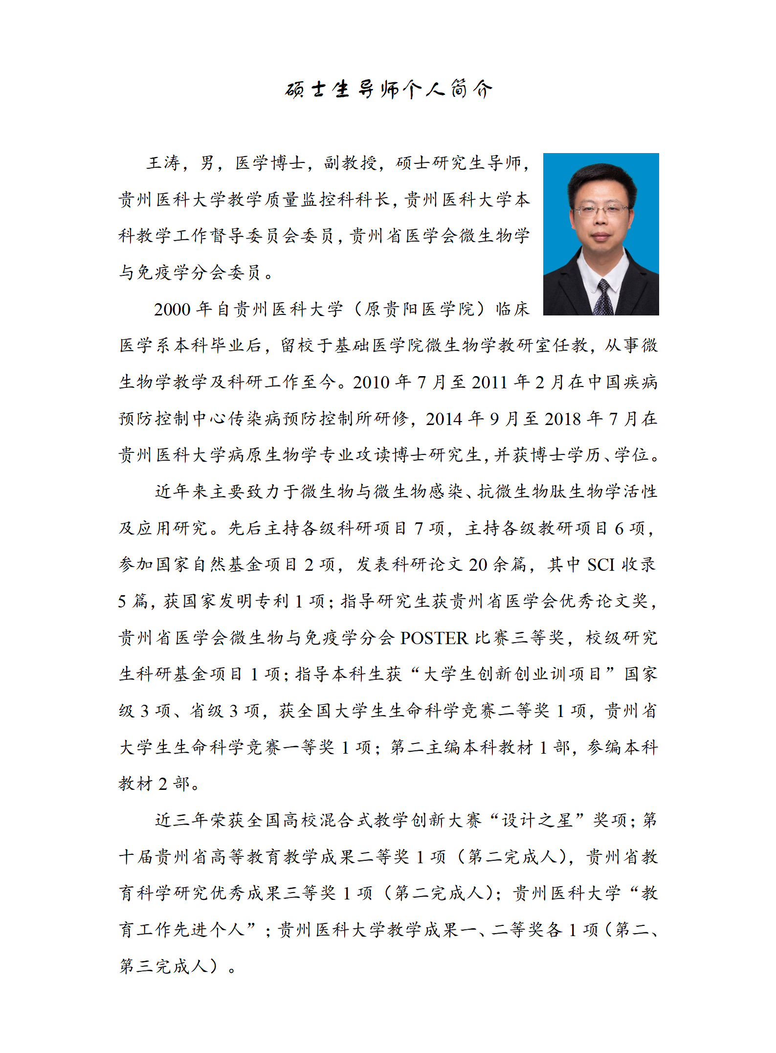 病原生物学(微生物学方向)硕导简介