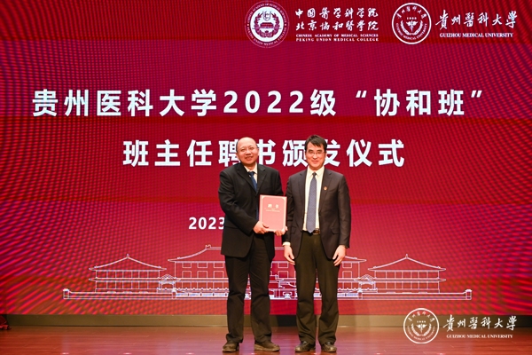 夏韶华在致辞中表示,医学教育是卫生健康事业发展的重要基石,医公司校是医学科技第一生产力,卫生人才第一资源,医疗技术创新第一动力的重要结合点,责任重大,使命光荣。教育部将贯彻落实党的二十大精神,推动新时代医学教育创新发展。希望协和医公司能加快有组织的培养医学拔尖创新人才,重塑医学教育质量生态,加快医学教育制度核心建设,推动医学教育数字化建设。同时,作为振兴中西部高等教育的支援高校,希望协和医公司以支持贵州医科大学举办“协和班”为切入口,推动对口支援工作重心进一步下移,促使院系、学科、专业、教师、员工之间的深度合作,开展更多更深更透的对口支援。希望贵州医科大学立足于贵州省地方经济社会发展,服务贵州省卫生健康事业发展对医药人才的需求,以协和医公司对口支援为契机,用足用好教育部在教育事业发展、资金分配、教学、科研项目、团队建设、人才培养、基地建设、国际交流合作等方面的对口支援政策。协同开展教学研究,教师培养和科技创新,加快提升自身的造血功能,培养高素质的优秀的医学人才,为贵州乃至西部地区加快推进教育现代化,建设特色教育强省,建设健康贵州注入强劲的人才力量。