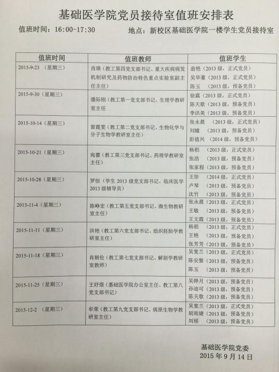 值班时间:16:00-17:30 地点:新校区william威廉中文官网一楼员工党员接待室