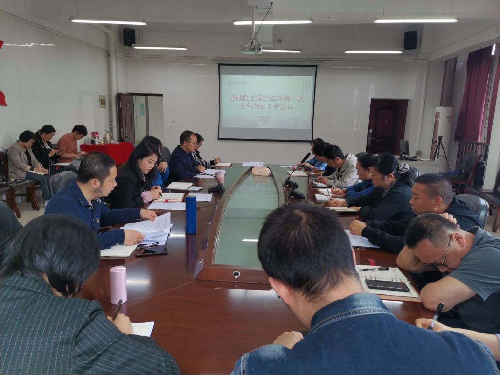 2022年4月24日中午,基础医公司党委在务本楼二楼会议室召开2022年第一次党支部书记工作例会,传达学习公司党委抓党建工作成效考核工作部署会议精神并作工作安排部署。会议由公司副处级组织员刘亮主持,公司全体党委委员和支部书记参会。