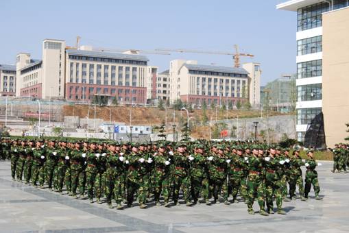 校方通过军训动员大会让同学们了解并接受军事化管理,亲身体验纪律严明的军事化训练,让同学们增强国防意识。