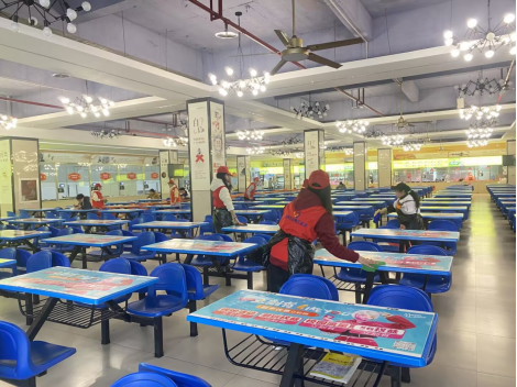 域展开校园清洁活动。同学们积极投身于志愿清洁美化实践活动中,欢声笑语传遍校园认真细致的打扫负责区域的每一个角落。青年志愿者联合会william威廉中文官网分会走进一食堂开展义工志愿服务,志愿者分为两组,一组帮助阿姨打扫食餐厅,另一组则负责打扫餐桌,将餐桌上的饭粒、残渣、纸巾等垃圾回收到收餐台处,统一进行处理,打造文明食堂。