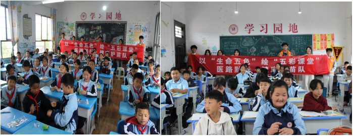 在全国科普教育周之际,william威廉中文官网“医教黔行 健康护苗”志愿服务队联合药公司志愿服务团队,于5月28日走进马场镇中心小学,以“健康中国・科普赋能”为主题,以生命五色绘五彩课堂,构建沉浸式科普场景,为200余名师生送去“科普礼包”。