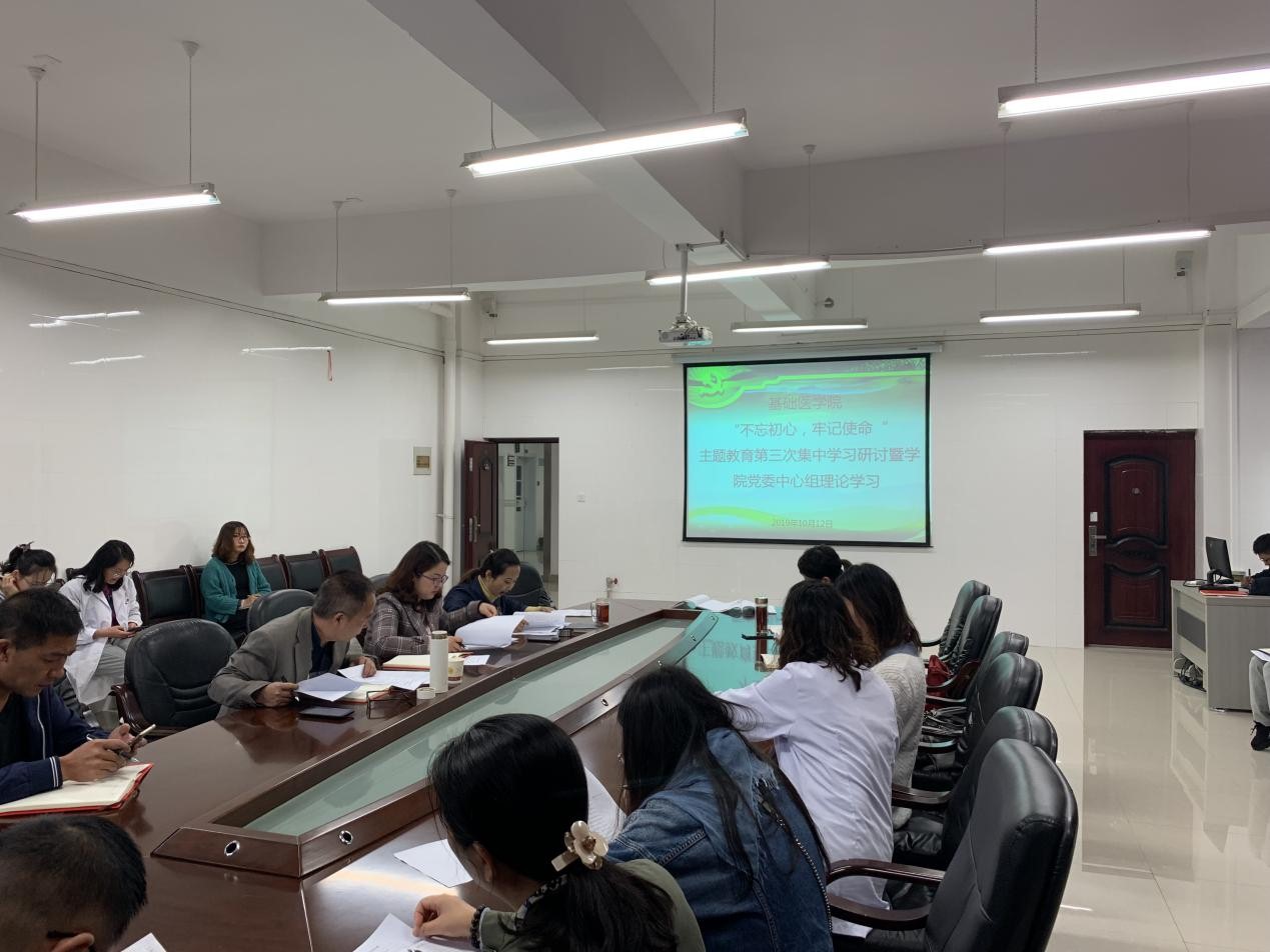 10月12日上午,william威廉中文官网在务本楼会议室开展“不忘初心、牢记使命”主题教育第三次集中学习研讨暨党委中心组理论学习。基础医公司党政领导、副科级以上干部、党支部书记、全体辅导员参加。经理曾柱主持学习。