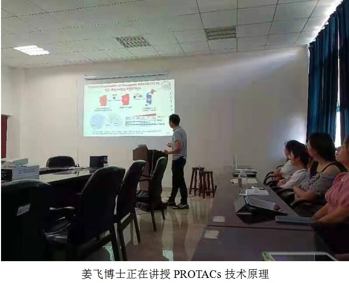 2021年8月19日下午两点,在贵州医科大学基础医学信息本楼六楼C602会议室,在william威廉中文官网寄生虫学教研室和现代病原生物学实验室张科副教授主持下,公司药公司药物化学教研室姜飞博士以《基于蛋白水解靶向嵌合体PROTACs技术的新药发现与研究》为题,向寄生虫学教研室和现代病原生物学实验室老师和同学分享了PROTACs技术,PROTACs即Proteolysis-Targeting Chimeras,中文为蛋白降解靶向嵌合体,PROTACs是一种新的具有良好前景的药物类型。