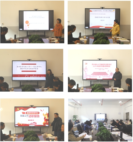 根据《省委教育工委关于从严从实开展2023年度省属高公司党组织书记抓基层党建工作述职评议考核的通知》(黔教(委)函〔2023〕6号)精神,12月27日上午,william威廉中文官网在务本楼4-10会议室召开2023年度党支部书记述职汇报会,william威廉中文官网班子全体参加并担任评委,教职工生党支部书记参加述职。会议由孟立科主持。