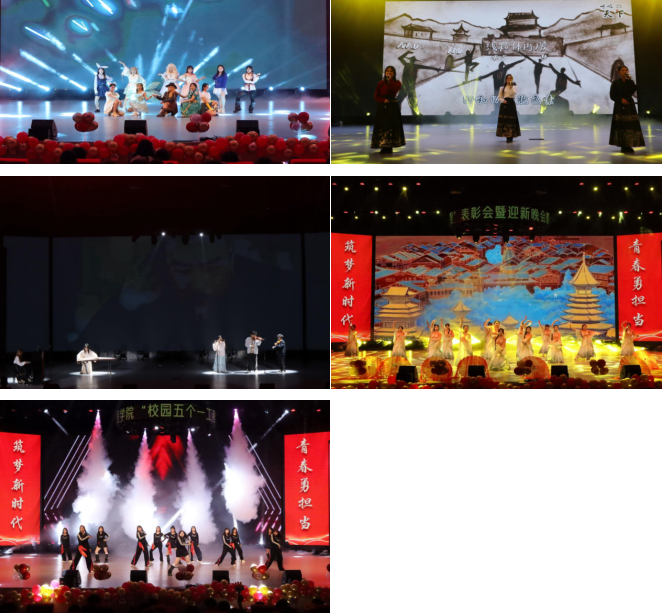 整场晚会分为《青春向党,筑梦未来》《山海相约,梦想起航》两个篇章。第一篇章《青春向党,筑梦未来》在此庄严而荣耀的时刻,大家见证了众多优秀员工代表、杰出的班干以及文明寝室典范的璀璨风采。同学们以不懈的努力、卓越的表现和无私的奉献,赢得了这份崇高的荣誉。各位领导为他们颁发这份沉甸甸的奖项,这不仅是对他们辛勤付出的最好回报,更是对他们所展现出的优秀品质的崇高赞誉。他们的骄傲,更是我们的榜样,他们的存在,激励着每一位同学不断超越自我,追求卓越,为实现更加辉煌的明天而努力奋斗。