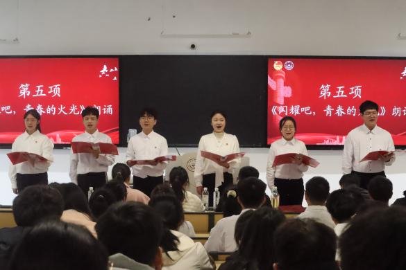 朗诵表演《闪耀吧,青春的火光》让在场的团员青年更加深刻地理解了团的精神和青春的意义,伴随着激昂的朗诵声,每一个字句都如同璀璨的星光,照亮了他们的心灵。