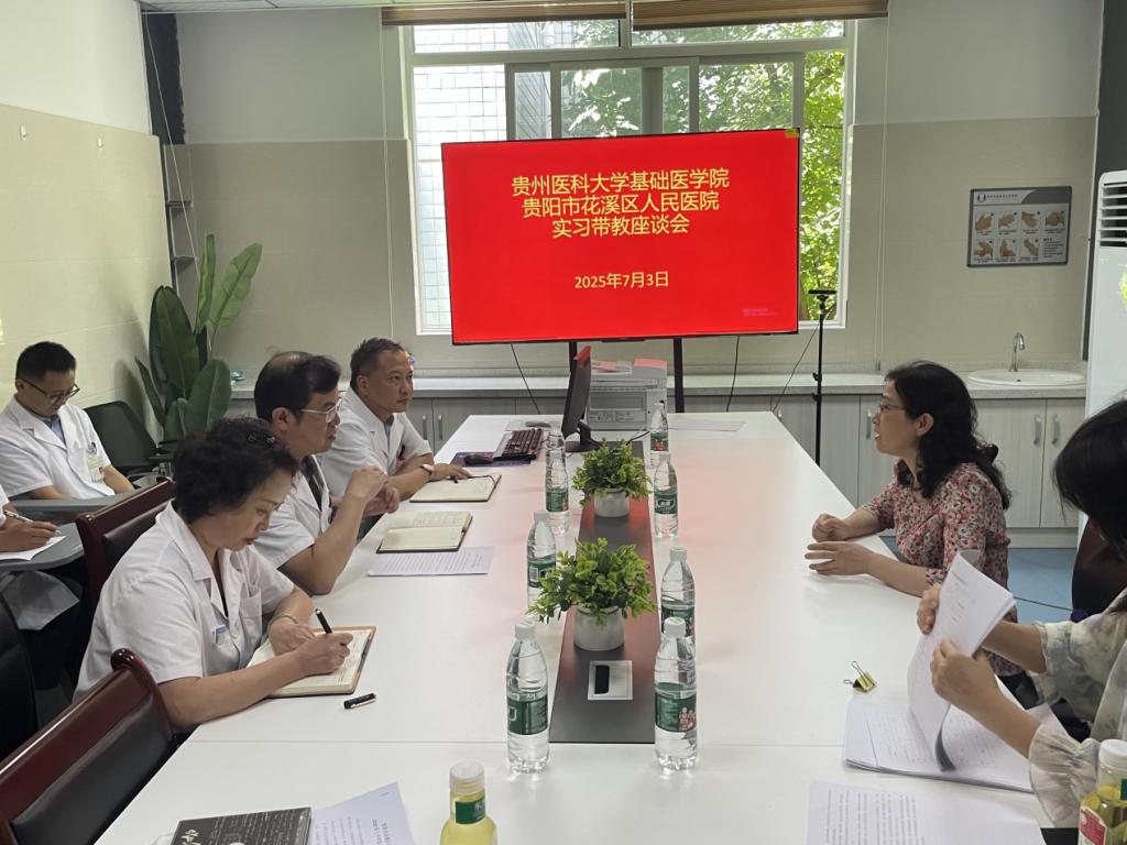 7月3日,花溪区人民医院经理吴铎、副经理田巍、医务科及内外科教研室主任出席专题座谈会。徐红详细介绍了基础医学专业的培养方案和实习情况,并就临床实习大纲的修订提出建议。吴铎表示,医院将全力配合公司工作,深化医教研合作。田巍全面汇报了医院的教学工作情况,包括实习带教、安全管理等具体安排。针对该专业临床实习大纲及实习手册修订,专家们建议优化临床实践内容,强化病例分析与技能操作考核,并完善安全管理机制,确保实习质量与安全。