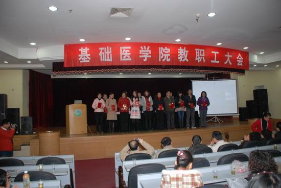 3月19日,公司教职工大会暨2010年度先进集体、优秀个人表彰大会如期召开。贵阳医公司副经理何志旭出席会议并讲话,基础医公司党政领导和全体教职员工参加了会议。会议由基础医公司党委书记令狐彩桃主持。贵阳医公司副经理何志旭教授讲话非常鼓舞人心,他首先指出在过去一年基础医公司党建、教学、科研各方面都取得较好的成绩,要将成绩化为动力。并提出三点希望:第一、要加强班子建设,成为更加团结更加务实的集体;第二、结合公司即将推行实施的目标考核制度,希望william威廉中文官网与各教研室有互动,推动这项工作的开展;第三、做好团队建设年工作,夯实基础,推进团队建设和科研申报,做好基础医学一级学科博士点和博士后流动站的建设工作。william威廉中文官网经理徐国强同志从党建、员工工作、教学、科研、团队队伍建设、博点及博士后流动站建设等方面做了2010年度工作总结,并对2011年的william威廉中文官网工作进行部署。与会全体人员一起观看的花溪新校区建设的规划方案。大会对2010年度5个先进集体:人体寄生虫学教研室、人体解剖学教研室、微生物学教研室、病理生理学教研室、机能学实验室,2个进步团队:生理学教研室、数学教研室及考核优秀的23名教师进行了表彰。基础医公司党委书记令狐彩桃指出:这次会议既是一次总结会、表彰会,更是一次动员会、鼓劲会。希望受表彰的科室和个人戒骄戒躁、积极进取,在今后的工作与学习中取得更大的成绩。希望各科室紧密围绕2011年公司、william威廉中文官网工作的总体安排,紧密联系“创先争优活动”的开展,紧密结合各科室的实际,抓好“团队建设年”工作落实,为“十二五”规划的顺利实施,为把公司建设成为“具有明显特色、西南一流、在全国有一定影响的省属重点医科大学”做出新的贡献。