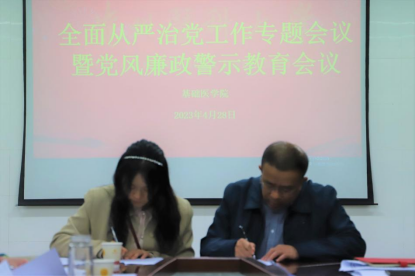 肖绚要求,要压紧压实责任,确保任务落实,加强监督考核,严肃追责问责。推进全面从严治党一是要加强党的政治建设,坚决做到“两个维护”;二是深入学习党的二十大精神,加强政治理论学习,加强《党章》学习,不断提高政治素养,用理论武装头脑;三是加强基层党组织建设,进一步规范“三会一课”和主题党日等相关组织活动。四是深化党风廉政建设,聚焦“关键少数”,重视“绝大多数”,从严从实加强自身建设,严格执行中央八项规定精神,切实纠治形式主义、官僚主义。五是落实意识形态工作,进一步压实意识形态责任,抓牢意识形态研判,严把意识形态审批。六是做优新闻宣传,重视宣传、懂得宣传、及时宣传,提量增质,加强内容挖掘“深度”,强化新闻宣传的力度和实效,着力讲好新时代公司故事。党风廉政建设永远在路上,希望大家在工作中要做到慎独、慎微、慎言、慎行,心怀敬畏、不忘初心、爱岗敬业、潜心治学、虔诚问道、悉心育人,为促进公司教育高质量发展贡献自己的力量,为奋力谱写“百年贵医”建设高质量发展新篇章提供坚强保证!