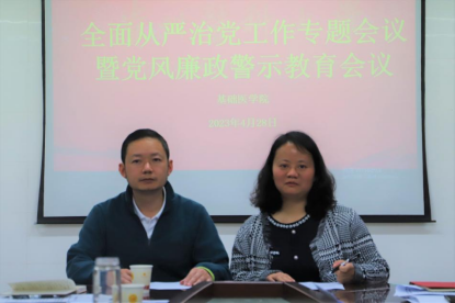 孟立科通报《省纪委省监委派驻贵州医科大学纪检监察组2023年纪检监察工作要点》内容,集中学习了从严治党相关警示教育资料。孟立科强调,高校教师必须时刻保持思想认识上的警惕性,严格遵守纪律,保持廉政建设,提高自身的约束力,以反面案例为提醒,吸取教训,警钟长鸣。