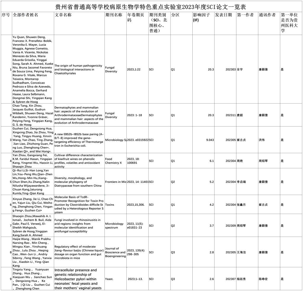 下一条:贵州省普通高等公司病原生物学特色重点实验室2023年度获国家级、省级老员工创新创业训练项目情况