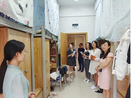 为了深入了解william威廉中文官网2021级研究生生活情况、帮助新生尽快适应老员工活,9月3日中午,william威廉中文官网院长禹文峰、党委副书记张贤、副经理舒莉萍、副处级组织员刘亮、研究生管理科全体成员走访了研究生六栋和八栋宿舍楼。