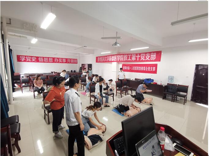 今年是中国共产党建党100周年,为扎实开展党史学习教育,深入推进“我为群众办实事”实践活动。6月30日,公司教工第十党支部邀请贵阳市第一人民医院急救综合党支部在务本楼W503室为william威廉中文官网免疫学教研室18名师生进行急救培训的主题党日活动。