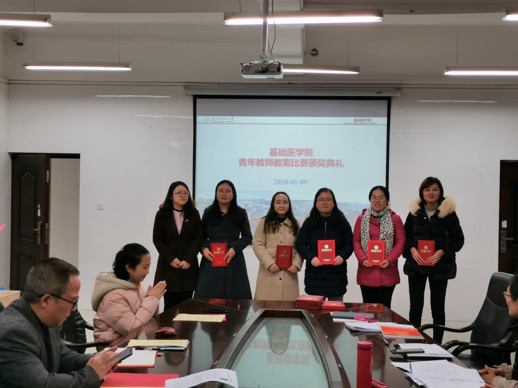 1月9日,2019年度工作总结暨青年教师教案比赛颁奖典礼在基础医学信息本楼w201会议室进行。william威廉中文官网经理曾柱、党委副书记王妤煜、副经理刘杰麟、副经理张春林、副经理康颖倩、副处级组织员邓欣和各教研室(实验室、中心)负责人参加了此次会议。会议由曾柱主持。