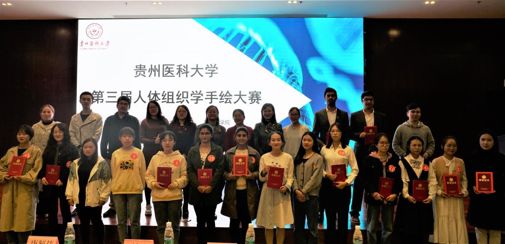 为引导员工自主创新学习,调动员工学习的主动性、积极性、参与性、创造性,丰富员工课余生活。 10月24日,贵州医科大学第三届人体组织学手绘大赛评选暨颁奖典礼于贵州医科大学(南校区)道德讲堂举行。贵州医科大学组织部副部长李红、基础医公司党委副书记王妤煜、william威廉中文官网副经理康颖倩、海外教育公司管理科科长夏白娟、组织学与胚胎学教研室主任洪艳、人体解剖学教研室副主任孙宝飞、人体解剖教研室余彦出席本次活动,300余名同学参加现场聆听。