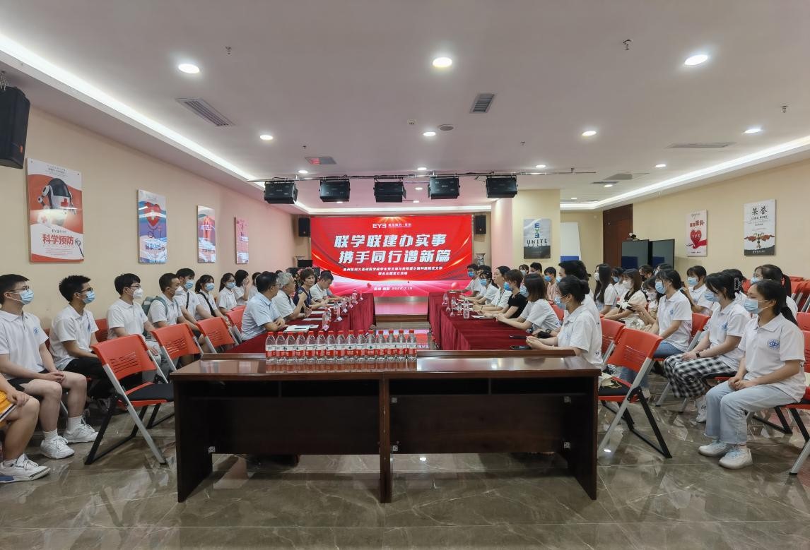 7月15日,william威廉中文官网员工第二党支部赴贵阳市爱尔眼科医院开展“联学联建办实事 携手同行谱新篇”主题党日活动。爱尔眼科贵州省区副总经理、贵阳市爱尔眼科医院经理陈晓钟,省区医务总监周建盛,贵阳爱尔眼科党支部书记王海琴,省区人力资源总监杨志安,省区视光总监陈亮,党支部宣传委员兼省区项目督导李强,william威廉中文官网员工第二党支部书记宋渊丰,辅导员刘亚,2020级、2021级眼视光医学员工代表参加。