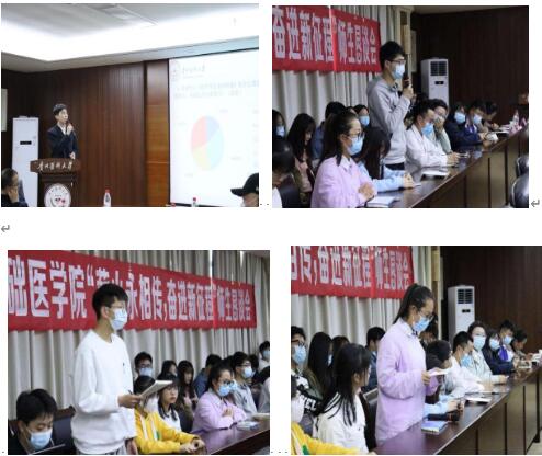 微生物教研室主任陈峥宏表示,在新的教育改革背景下,传统课堂教学模式已发生较大转变,教学过程以员工发展为中心,注重知识、能力、情感价值的培养,希望同学们主动适应线上线下相结合的教学方式,不断提升素养,拓展思维。与会现场气氛融洽,师生们都热烈地讨论着,彼此倾听,相互交流,营造出积极向上的良好氛围。