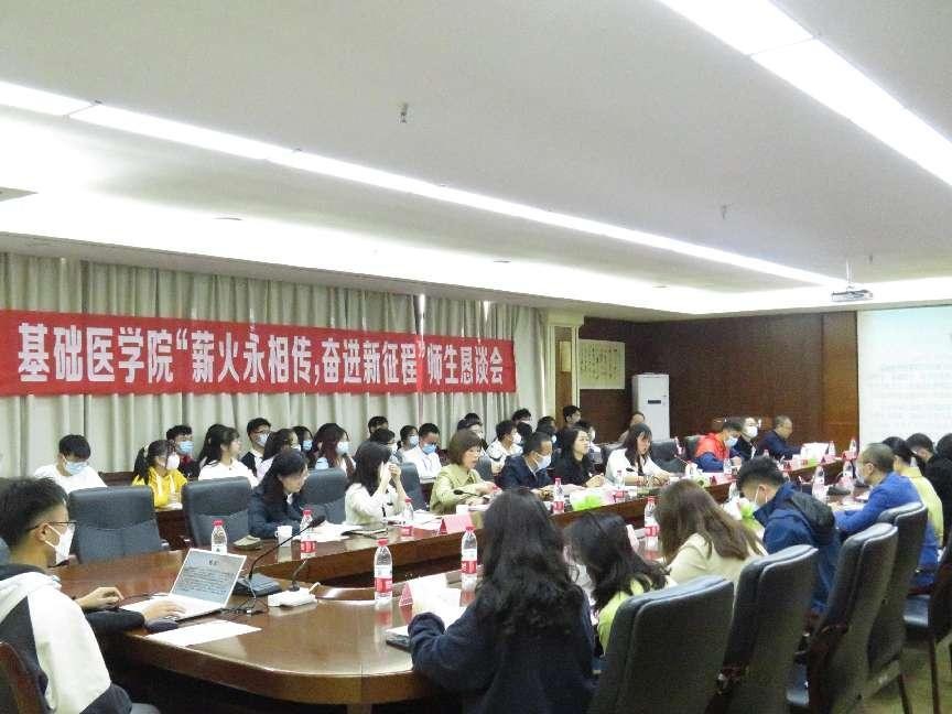 最后,王妤煜代表基础医公司党委对公司各职能部门及兄弟院系长期以来的关心和帮助,对本次师生恳谈会的大力支持表示衷心的感谢。她认为此次恳谈会,员工代表踊跃发言,为公司发展提出了好的建议,老师们也从课程教学出发回答了同学们的疑问并提出了学习建议,达到了教学相长的目的。她希望同学们要珍惜难得的学习机遇,勤奋刻苦,开阔思维,敢于创新,增强本领,勇担责、能担责;要坚定初心,不负使命,树立正确的世界观、人生观、价值观;要加强体育锻炼,提高身体素质,为成为卓越医学人才打好基础。