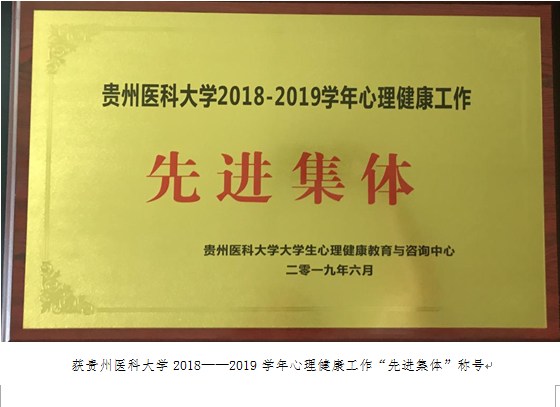 在公司评选中,公司荣获贵州医科大学2018——2019学年心理健康工作“先进集体”称号。