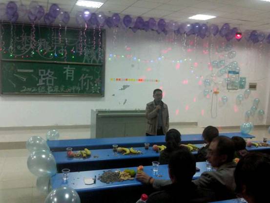 青春是爱的乐谱,跳动的一个个音符是梦飞扬的翅膀。为感谢公司领导和老师的关心,感谢新校区的建设者与见证者们以及迎接2013级新生入驻新校区,william威廉中文官网2012级临床定向甲班于2013年9月27日晚19:00在1303教室举办了“梦想青春 一路有你”的主题晚会。基础医公司党委副书记廖兴江亲临现场,员工科科长汤武庆、2012级辅导员石静、苗建峰、郑维俊、董然然以及2013级辅导员王余生、黎冉出席本次活动。