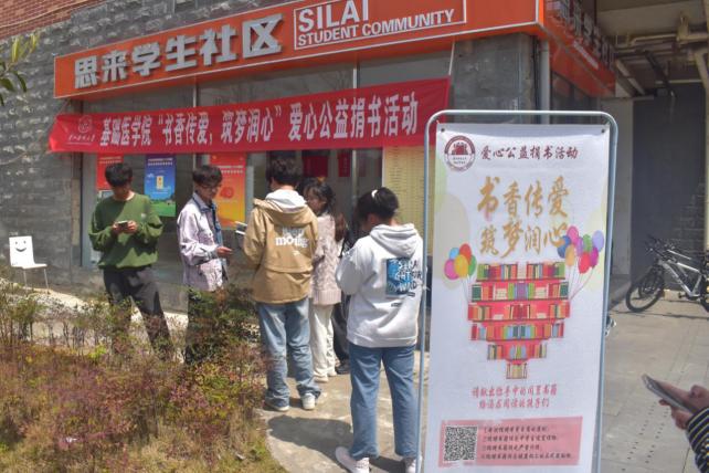 3月22日在思来社区,面向全校师生开展“书香传爱暖童心”爱心公益捐书活动。为全面贯彻落实党的二十大精神,深入开展学雷锋活动,教育引导广大师生自觉践行社会主义核心价值观,营造爱读书、善读书、读好书的浓厚氛围,师生们将闲置的、有意义的且适合中小员工阅读的书籍进行捐赠,为山区的孩子捐献一份爱心,共同参与“书香传爱,筑梦润心”爱心捐书活动。在爱心捐书点,基础学子积极响应,纷纷为捐书活动出一份自己的绵薄之力,现场共接收爱心书本约120本。活动现场,同学们用心写上赠言送给山区的小朋友,每一本书籍、每张书签都代表着一份心意,传递着知识与爱心。